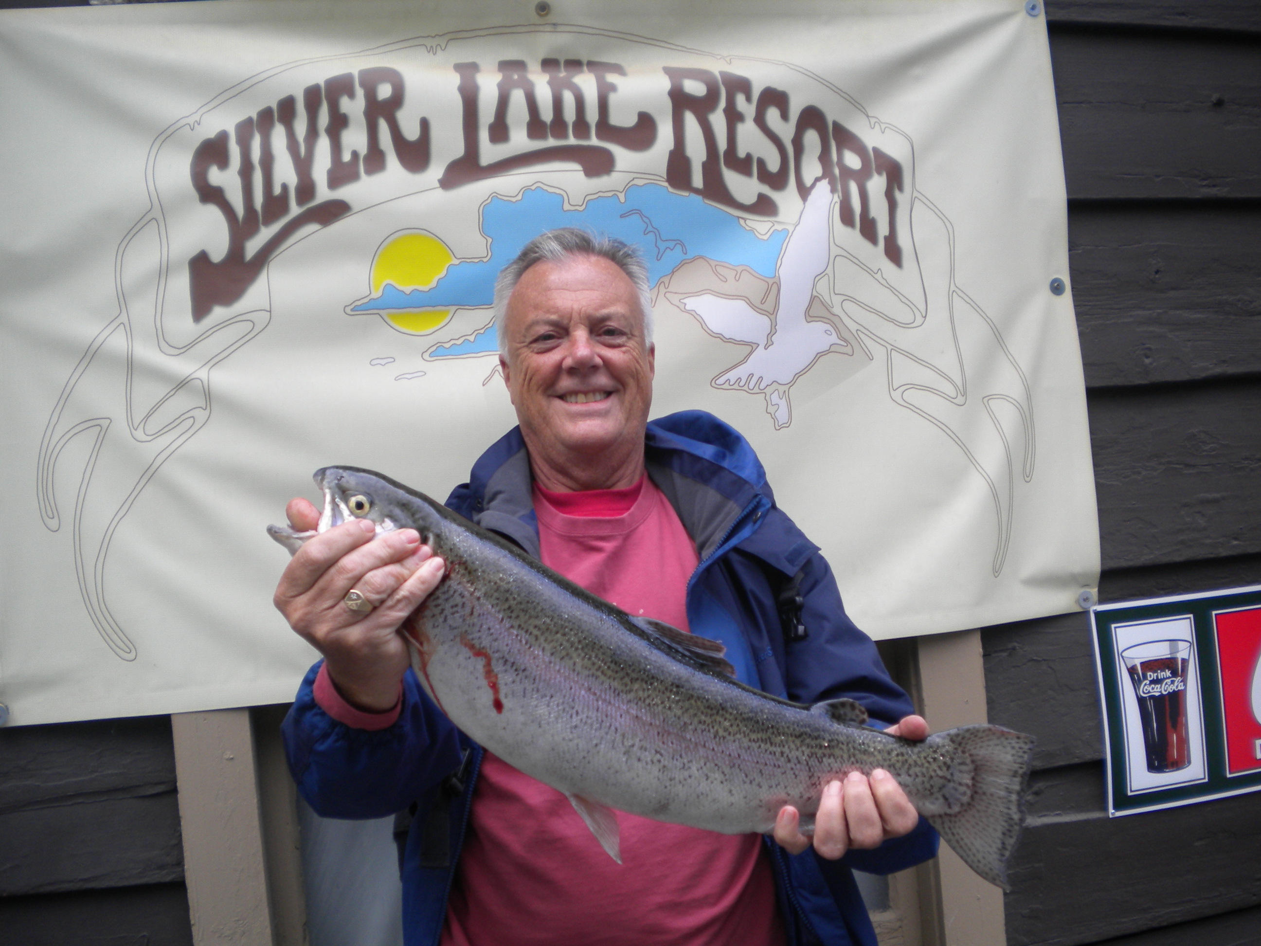 As you can see from the pictures this week the “Big Boys” are starting to show up as we had a number of very nice Rainbows come in from both Silver Lake and Grant Lake this past week. The fishing is still most productive down deep in the water but we are starting to see some better action near the surface. It is no surprise on what has been dong the best lately as Berkley Mice Tails, Berkley Power Baits in all colors and flavors and Thomas Buoyant have seen the most consistent action over the course of the summer and it has not changed. We are starting to see some good Fall Hatches in the bug cycles as the colors of the bugs are turning darker and bigger as Olive Matuka, Rainbow Matuka and Green Wooly Buggers have started to show some good action when you can get them deep. DFW dumped in their weekly load of catchable Rainbows this week which helps to keep the action moving along. We should continue to receive our weekly loads from DFW throughout the remainder of the fishing season which always helps.